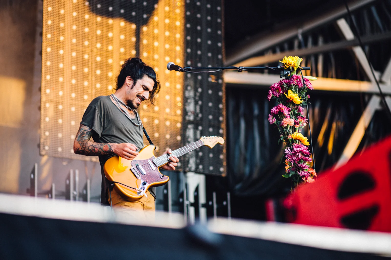 Brand New took the stage and I could not believe I was actually there about to photograph some of their set. Of course the three songs (that I was singing along to, of course) went by entirely too quickly, and we were escorted out of the pit back up to a tent along the far right side of the venue. I've seen Brand New a handful of times these past couple years with some of my best friends; it was unreal photographing them, and it was weird to be at a distance watching the rest of their set when I am so used to being in the thick of it, being pushed against the barrier, screaming the lyrics. This time I was surrounded by people casually talking and on their phones. Whenever I've seen Brand New, the crowd's been pretty rowdy with lots of pushing and crowd surfing, but whenever I looked into the crowd, it didn't seem too be too crazy. What was cool though which I don't normally get to hear while I'm in the pit with everyone was was the crowd singing along with Jesse Lacey and that put such a smile on my face. I always think that's such a beautiful thing, to hear the chorus of voices at concerts. Jesse and Vincent are mesmerizing to watch and it was during one song in particular that I can't remember for the life of me that Garrett's bass line was just perfect. I was fangirling the entire time, but especially when they played Noro and when Okay, I Believe You but My Tommy Gun Don't segued into Degausser. Brand New always puts on such a show and I hope this wasn't the last time I'll get to see them, but now at least I can cross getting to photograph them off my bucket list.